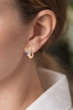 A geometric reinvention of the classic hoop. Structured, modern, and undeniably sophisticated. Pair with minimal studs for balance, or let the geometric silhouette shine on its own.